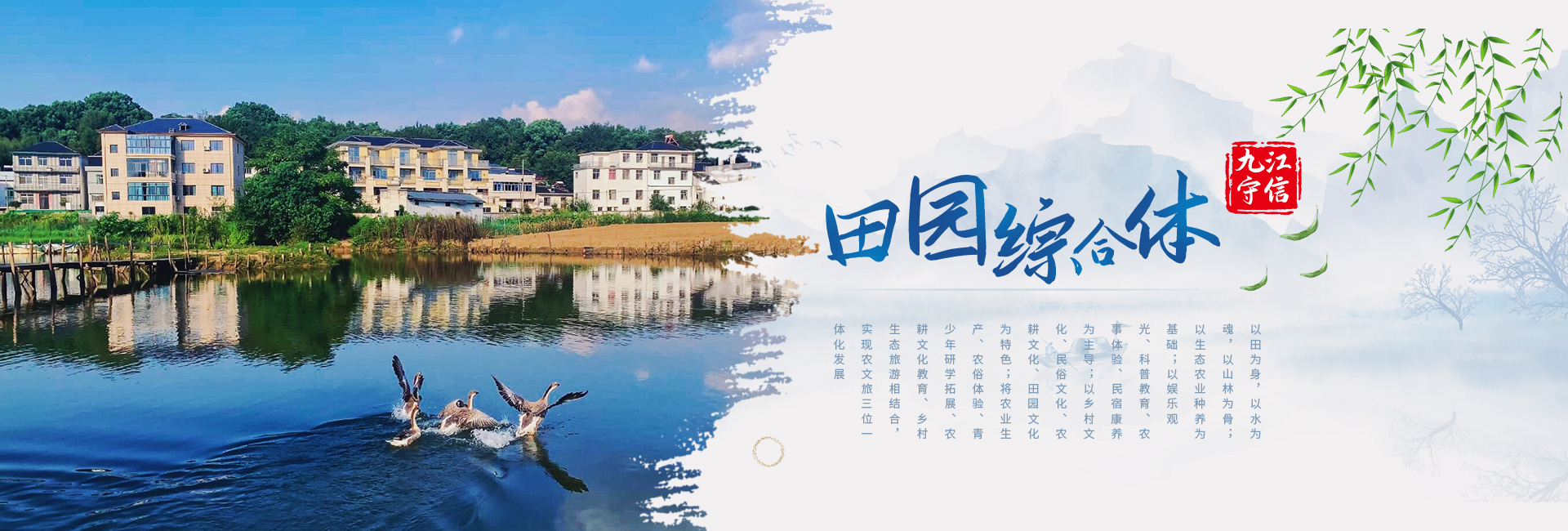 九江守信田園綜合體以田為身,以水為魂,以山林為骨;以生態(tài)農(nóng)業(yè)種養(yǎng)為基礎;以娛樂觀光、科普教育、農(nóng)事體驗、民宿康養(yǎng)為主導;以鄉(xiāng)村文化、民俗文化、農(nóng)耕文化、田園文化為特色;將農(nóng)業(yè)生產(chǎn)、農(nóng)俗體驗、青少年研學拓展、農(nóng)耕文化教育、鄉(xiāng)村生態(tài)旅游相結合,實現(xiàn)農(nóng)文旅三位一體化發(fā)展,成為生態(tài)性、主題性、復合型農(nóng)莊公園模式。